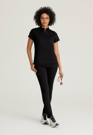 The Strive Legging– your go-to medical scrub for comfort and functionality! Featuring six pockets in total, including front and back patch pockets and a double cargo pocket, you’ll have plenty of space for your essentials. The overlap front waistband and mid-rise slim fit provide a flattering and secure fit, while the super-soft, four-way stretch fabric wicks away moisture to keep you comfortable all day. Made with sustainable fabric from five recycled bottles per garment, these scrubs are as kind to the planet as they are to your skin.